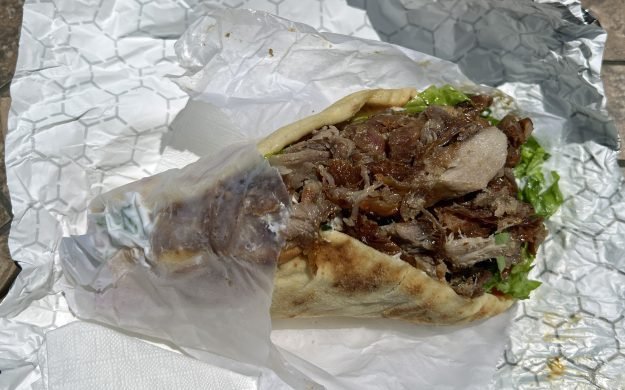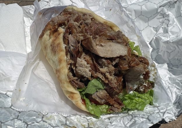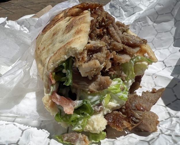 The pillowy pita held up well, though I think with all that protein, I could have used more Tzatziki and tomatoes.