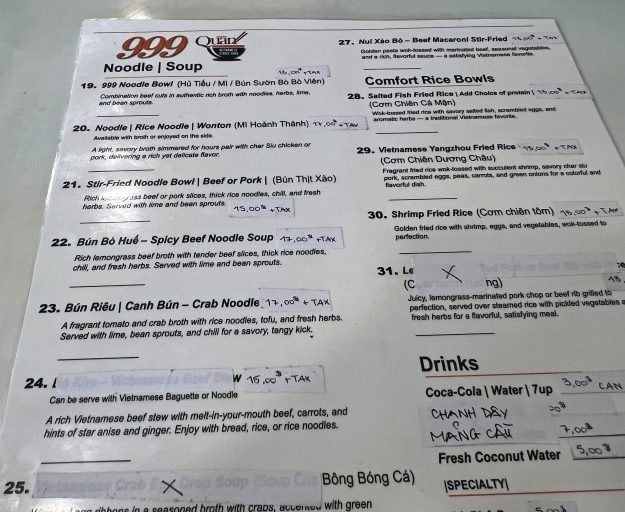 Ina somewhat funny moment….Vietnamese Music Videos were playing when I was seated. I was the only customer at the time. When I placed my order, the gentleman seemed a bit surprised that I didn’t speak Vietnamese….a few minutes later, Blues Videos in English started playing!! You gotta love it!