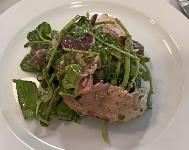 The Missus didn’t care for the sandwich much as it had too much mayo-cheese which detracted from the flavor of the crab in Her opinion. We did like the nicely toasted sourdough which was crisp and light.