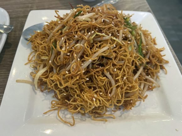 The texture was almost like pan fried noodles; which I liked as it took me back to the first time I had this dish. My cousin got married many moons ago to a guy who owned a business and was pretty successful. The reception was held on the Oceania Floating Restaurant, which at the time was world’s largest floating restaurant. You can read about it here. Being a poor kid, raised by a single mom; I’d never had any food like that before! And when these noodles arrived……I had always preferred noodles to rice when I was young…my mom attributed that to craving saimin all the time when she was pregnant with me…anyway; I’ve always loved this simple dish since then. This version had nicely coated noodles; it could have used more sprouts and scallion though. Word of warning, I don’t think this would heat up well….so you ‘betta finish ’em all up at the table.