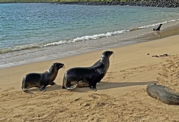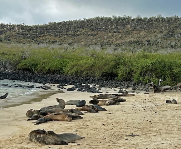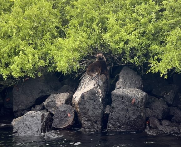 Fabrizio, the Naturalist in our Zodiac mentioned that there’s a large colony of Sea Lions in the bay and also pointed out the first Blue Footed Boobies of the trip!