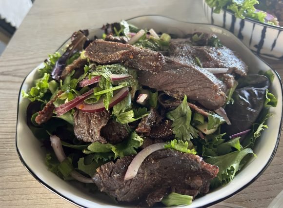 Again, hardly any spice and really lacking in the toasted rice powder, fish sauce, and lemongrass flavors. It was in fact pretty mild overall, perhaps edging on too sweet. The one positive note was that the beef was quite tender and there was a decent amount of cilantro. As you can see by the amount of mixed greens; this was more of a salad, than Neua Nam Tok.