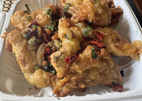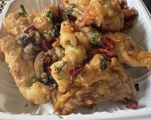 The Missus took a bite and said, where’s the flavor, it seems too thickly battered?