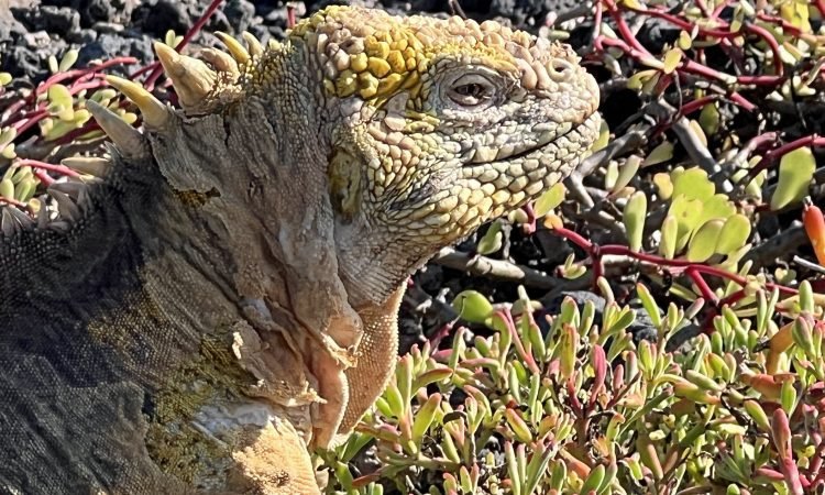 Plaza Sur is also known for another thing. Because of the size of the island, this is where one kind find what they call “Hybrid Iguanas“. That is where Male Land Iguanas have mated with Female Marine Iguanas creating a Hybrid. These were first noticed in 1977 by Howard Snell, a Biology Professor Volunteering with the Peace Corps. We were told to keep our eyes peeled.