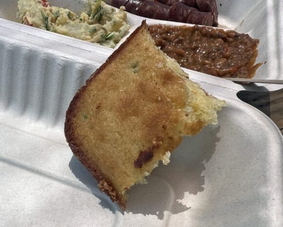 While we were eating; the really nice gentleman came out and handed us some cornbread; gratis.