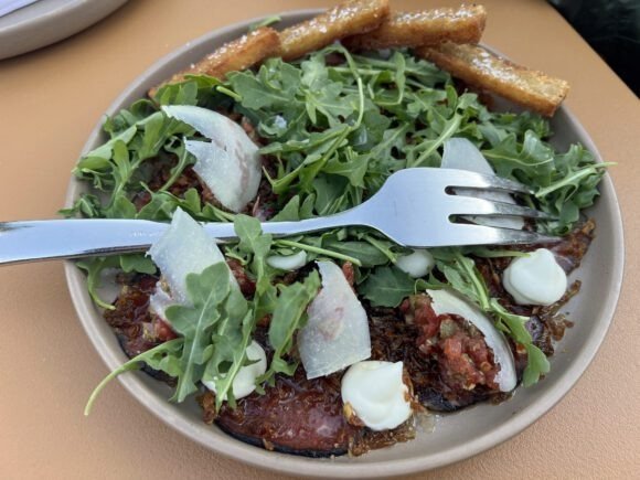 I’d say that this was more of a salad. The vinaigrette was so strong that it overwhelmed the beef. And even more strange was where those french fry looking things at top…they were hash browns! Still, I got my arugula fix, right?