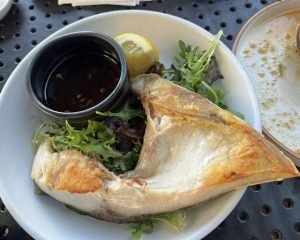 With the combination of the record heat and later sunsets due to daylight savings time, we were looking for a nice place for sort of an “happy hour” with a covered patio for JJ. Tanuki came to mind as we hadn’t been there in about a year. So, we headed on out, arriving just as the clock struck 5 , and got one of the treasured parking spots right at the door of the restaurant.