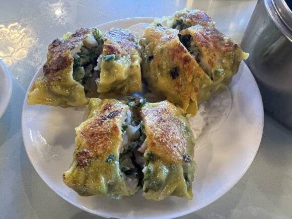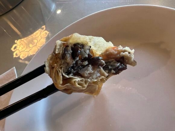 Lot’s of plump, oceany-savory-sweet shrimp. Mild crunch……the wrapper was fairly tender.