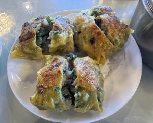 Lot’s of plump, oceany-savory-sweet shrimp. Mild crunch……the wrapper was fairly tender.