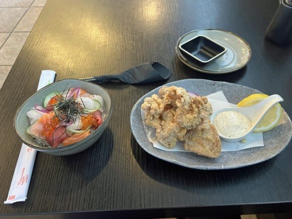 I did want my (these days) lunch time usual…the “regular” Bara Chirashi was like $50….a bit too much to spend for a regular lunch in my opinion. The lunch menu had a mini Bara Chirashi for $18 and figuring it would be a rather “petite” bowl, I also got…yes, I’m a creature of habit…some karaage ($13).
