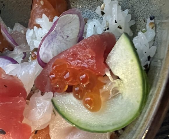 Being bara chirashi, I did expect the smaller cuts of fish. What I really enjoyed in this bowl was the ikura, it was savory and briney, but not overly salty. It had been preserved nicely and not over salted, which is also an indication of lower quality ikura. Nice burst of oceany-umami that went well with the tangy sumeshi. The rice was warm and soft; it had obviously just been cooked and prepped.