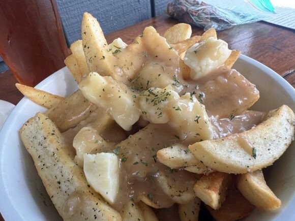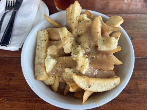 I was just going to have my pint and head home….but I noticed that several of the appetizers were 50% off during weekday happy hours! And I saw something on the menu that caught my attention…and no, it wasn’t the haggis which I’d had last time. It was the Poutine, which was just $5.50 during HH! It supposedly had Wisconsin Cheese Curds, which of course instantly brough my trips to Madison back into view.