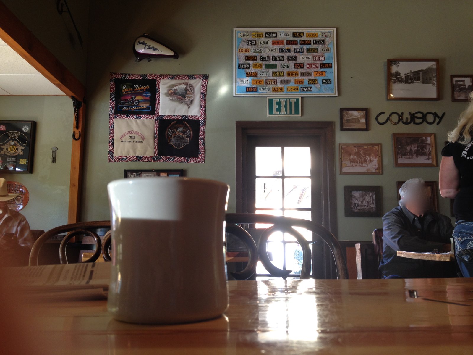 We decided to find a place to stop for our caffeine fix; so I kept on the look-out. I noticed the sign for Komeda's Coffee on the scond floor of one of the buildings. The place looked open so we walked up the stairs. We were cheerfully seated and handed some menus.