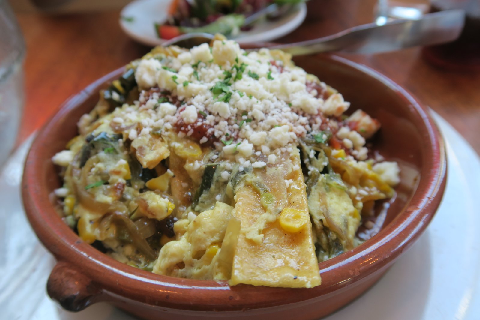 Wondering what was going on, we realized the food was being prepared and was not pre-prepared, the way you normally 'follow' your lunch or dinner down the prep and serving line. The 'Seasonal Veggie Fritatta' ($7), made with 'farm' vegetables, roasted potatoes, cage free eggs and topped with queso fresco. The whole idea of a single fritatta was fascinating and something we will be trying at home over the holidays. The freshness and flavors were outstanding. The toasted grain bread on the side was really good and didn't really need the butter or jam, but we did use those condiments.
