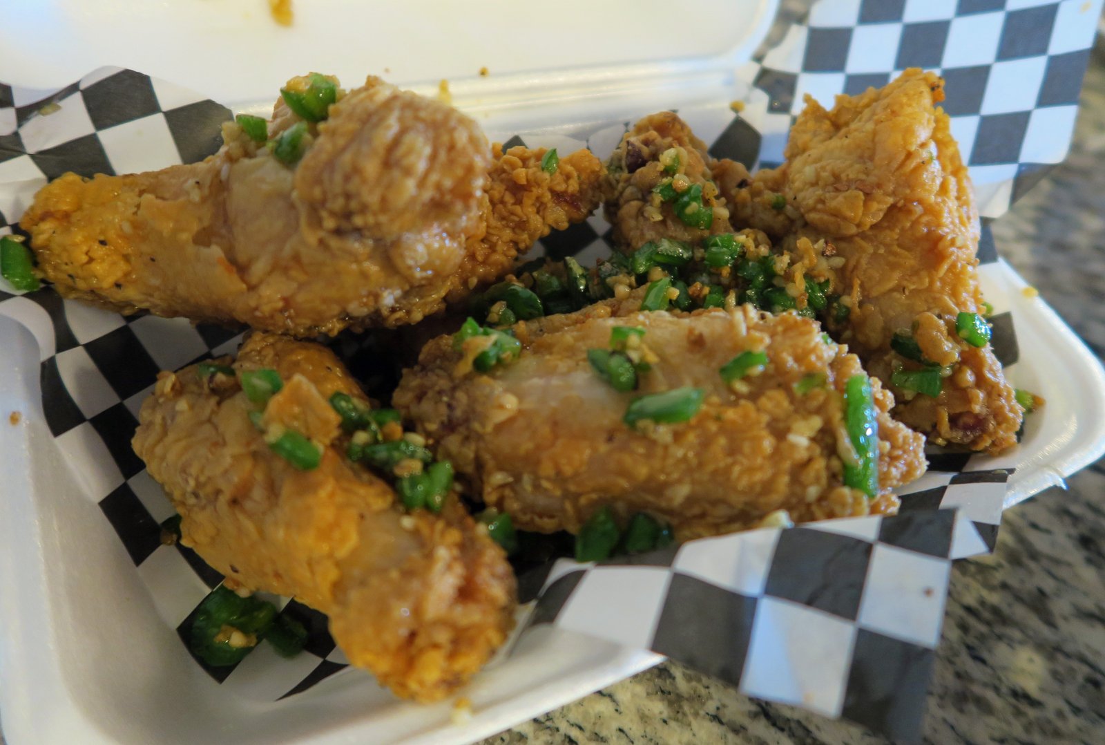 So, the wings, well, it has potential, but really needs some flavor….or bring your own sauce, or whatever. I'm hopeful that drumette was an aberration. At least I hope it is. I took the other four wings back to the office….after the first bite, Calvin dumped half a bottle of Sriracha on it. At least the other four pieces didn't seem to have any off flavors…..