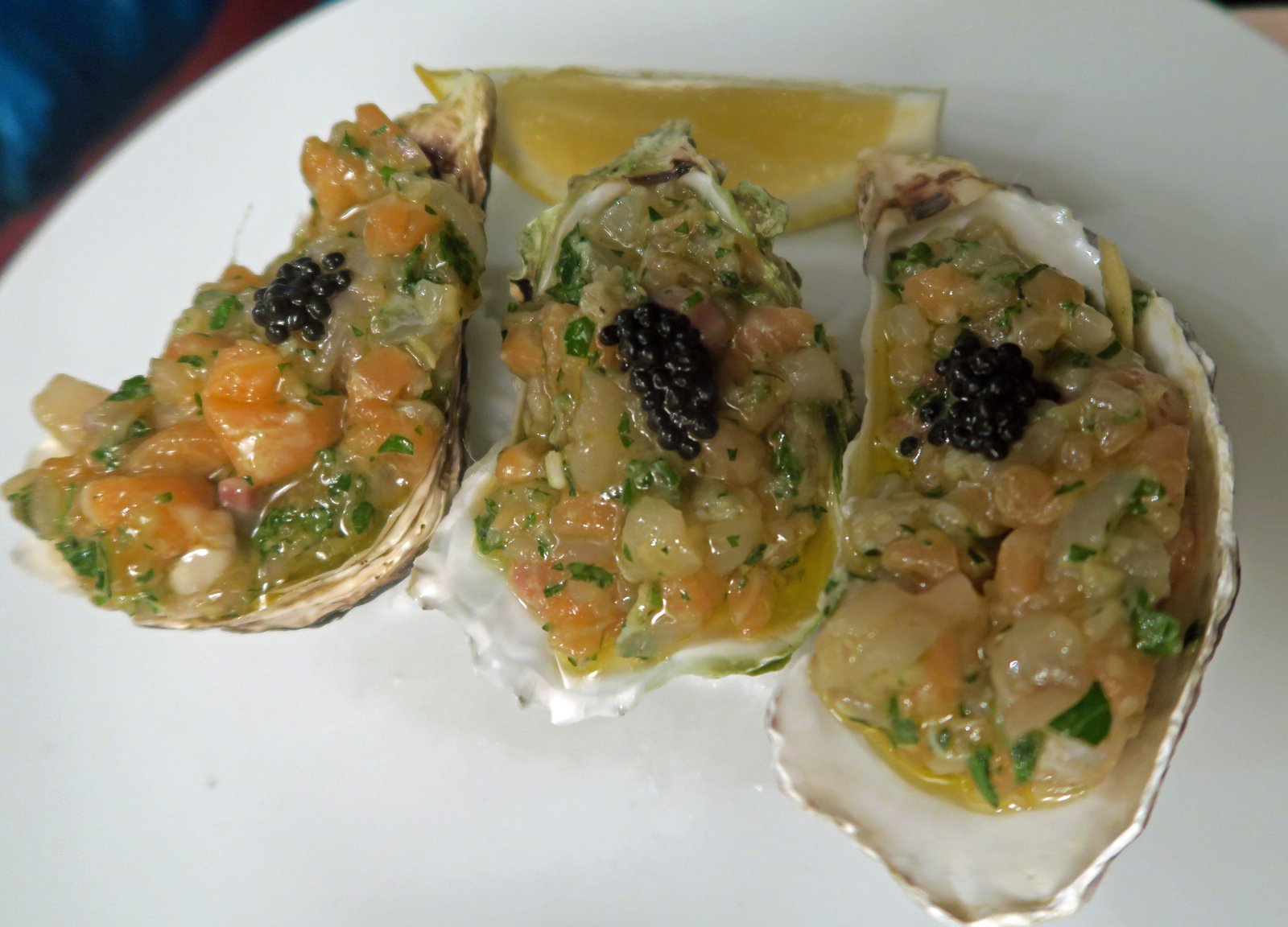 My goodness, the earthy-savory aroma, meaty texture of the Hen of the Woods mushroom, more familiar to me as Maitake, was just superb. The sage along with the cider added an citrus tone, along with a hint of sweetness. The oysters in the sauce just took the flavors to another level. I'm not sure of the purpose of the guanciale as I couldn't make out any pork flavors. But who cares. In terms of an outstanding dish; this has our votes.