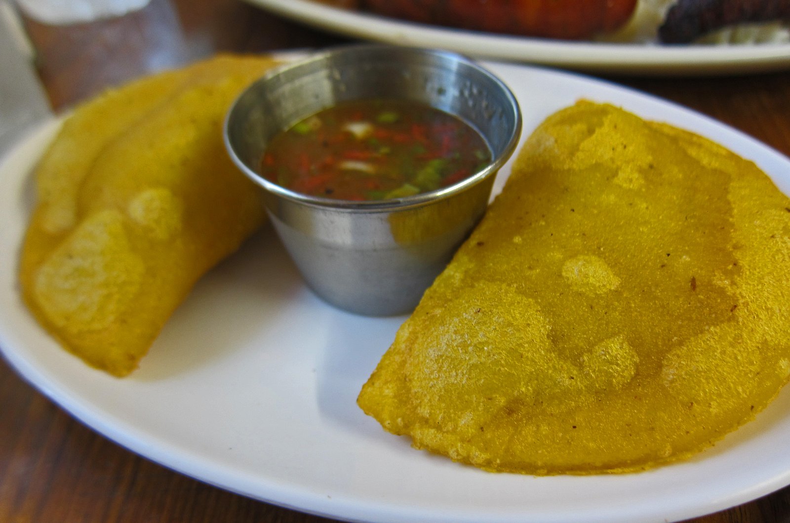 Alle wanted me to have a taste of her arepa, so I grabbed the knife and fork; but she told me to put those away saying: "you're mi pana, so grab it with your hands and have a bite….no; two bites." I came to find out that "Mi Pana" means "My Friend" or "My Buddy" in Venezuelan slang. Loved the flavors; perhaps a bit on the rich side, but not overly salty, slightly milky from the cheese; the flavor from the arepa really stood out.