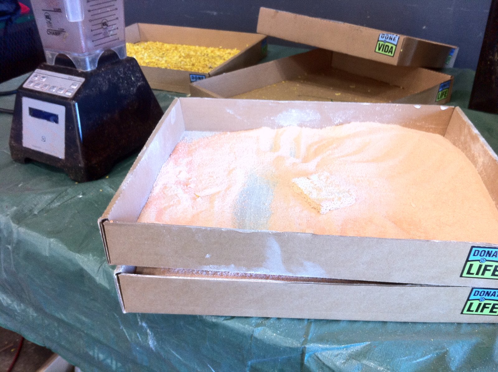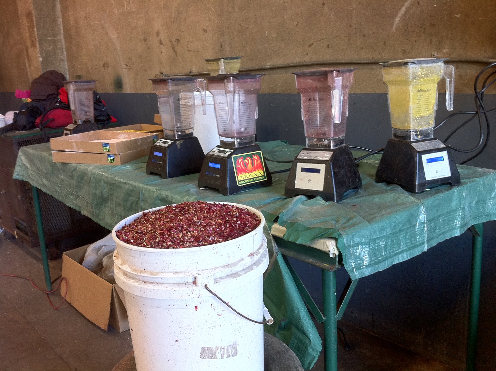 These powerful blenders are used to pulverize many of the flower petals so the powder can be glued onto some of the pieces of floats…