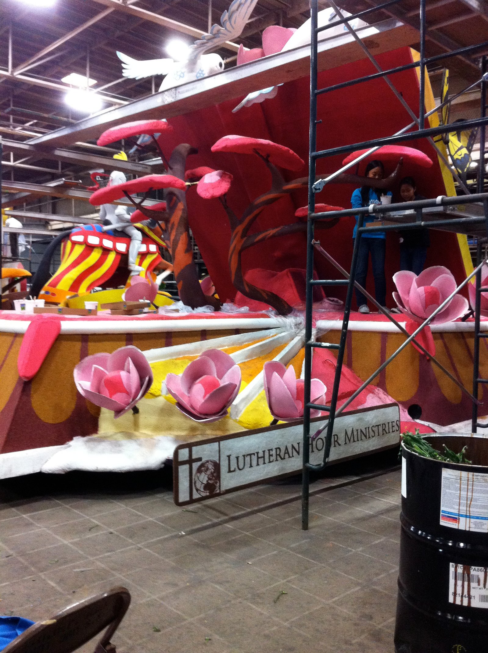 The Lutheran Hour Float, in its 63rd appearance in the Rose Parade, is as detailed in the back as it is from the front. (Do you see two volunteers in this photo?)