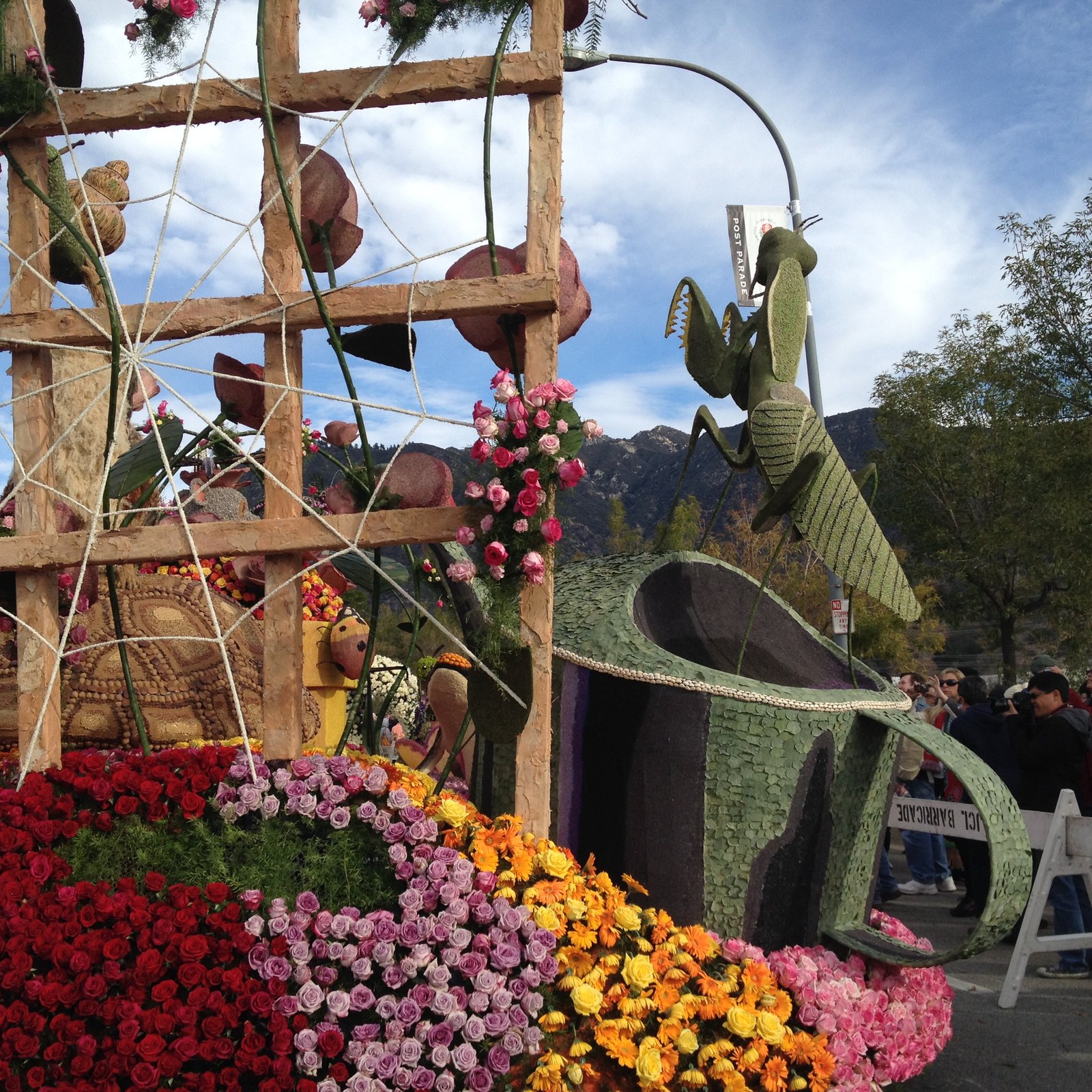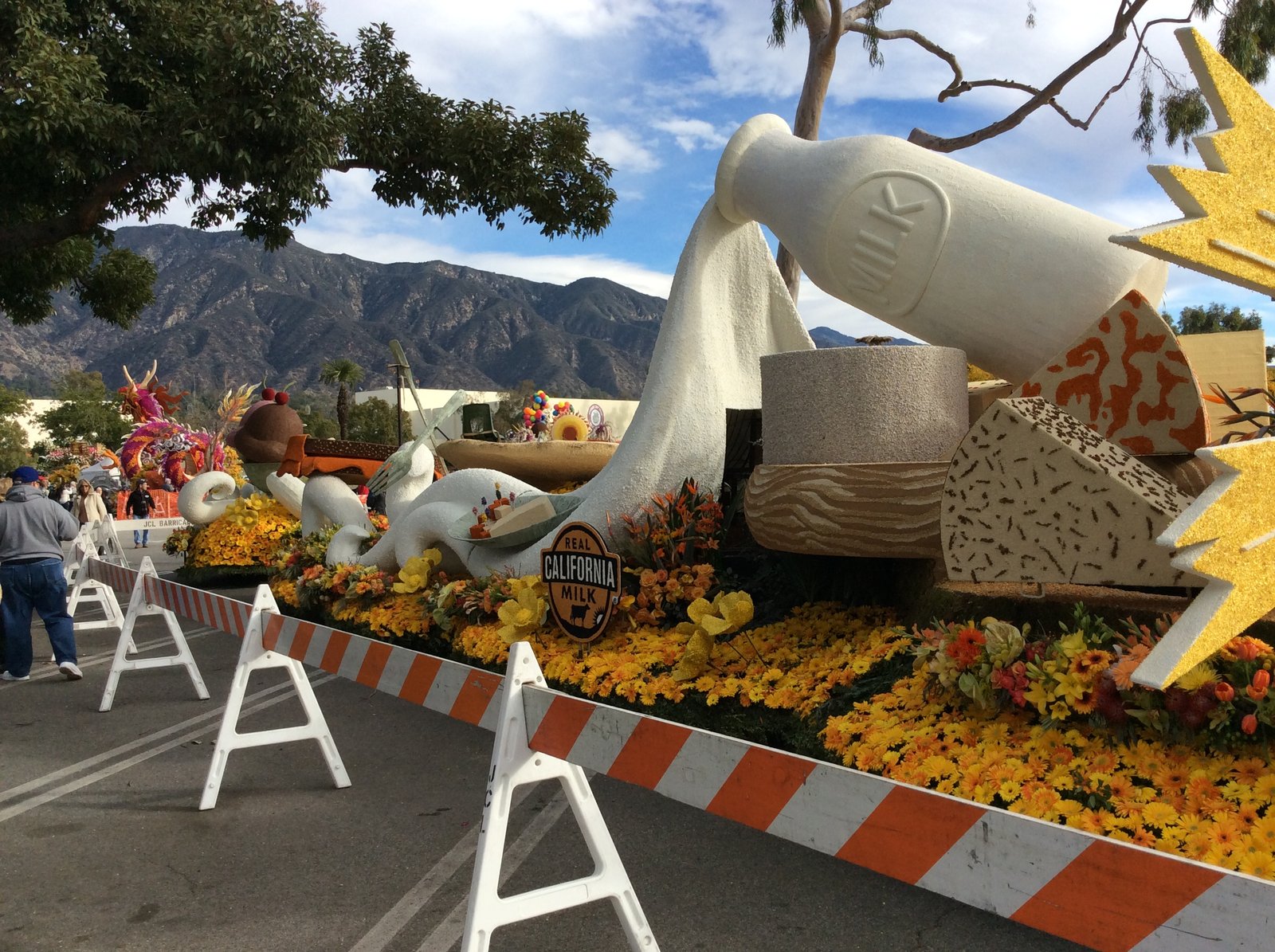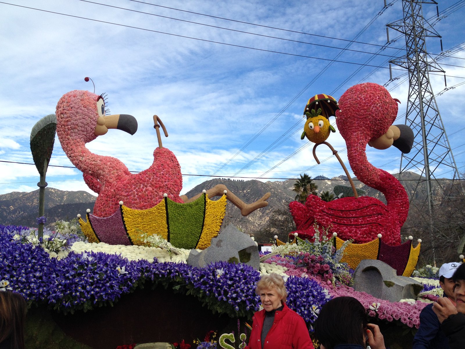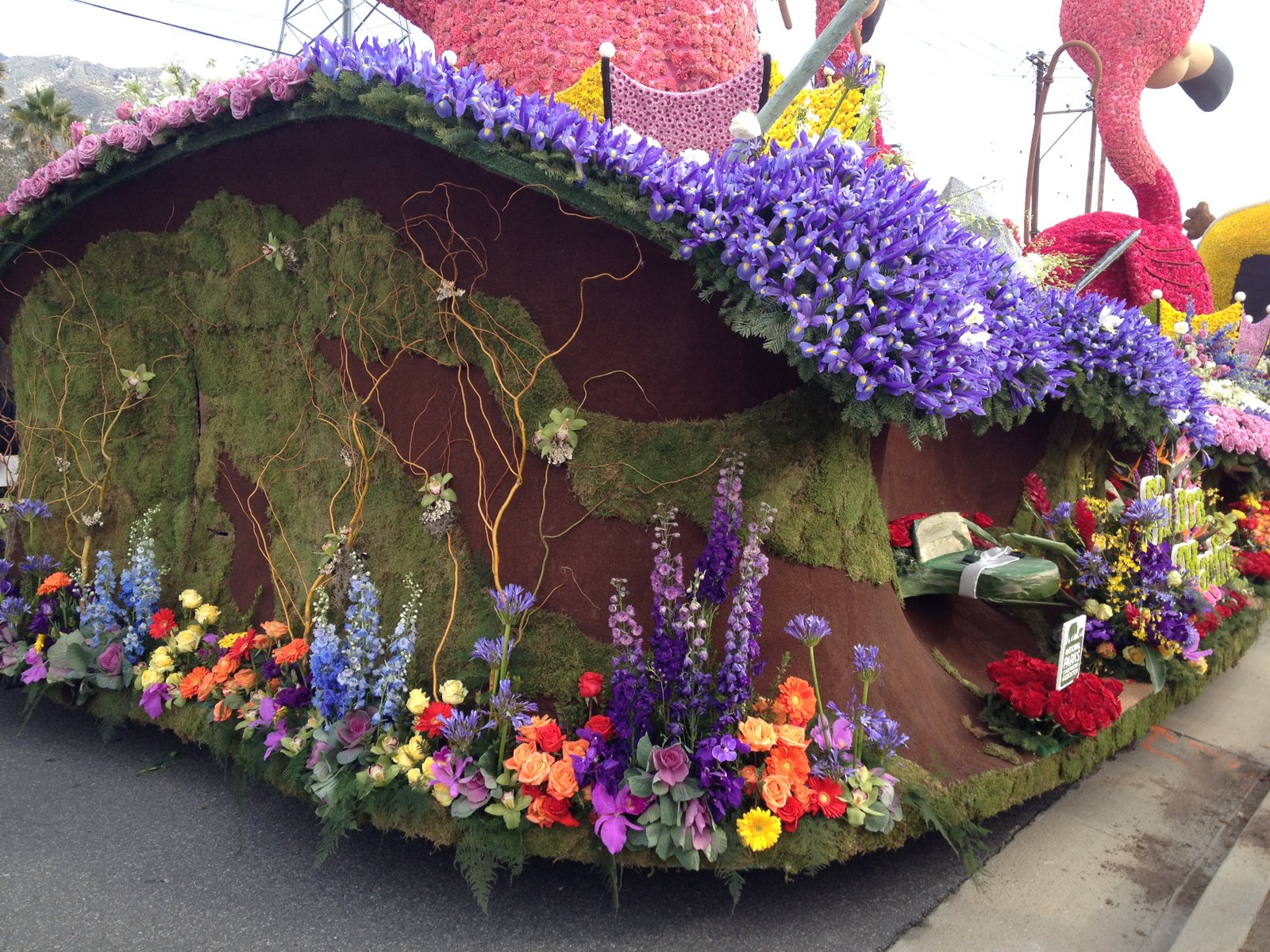 On January 2 of this year, The Mister and I drove to Pasadena to see the 2016 Tournament of Roses Rose Parade floats lined up end to end, at the Showcase of Floats. The 42+ floats were viewable at 2 p.m. on January 1, but we were watching a football game and didn't want to drive up. I've been keeping you up to date with the float road tests as well as a day when we helped decorate floats for this parade, themed "Find Your Adventure", which was co-sponsored by the National Park Service (which is celebrating its 100th year as a government agency). This gathering is all the floats at the end of the parade route, on display following almost a year of work.