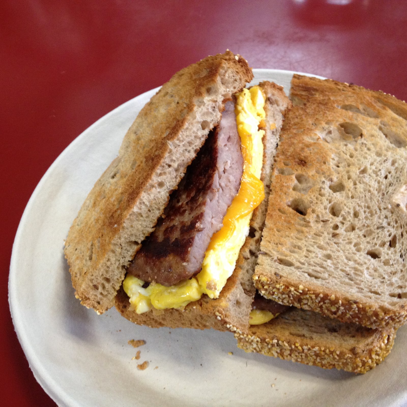 The egg & cheese sandwich with sausage ($5.60) because I always order breakfast sandwiches. I like this version.