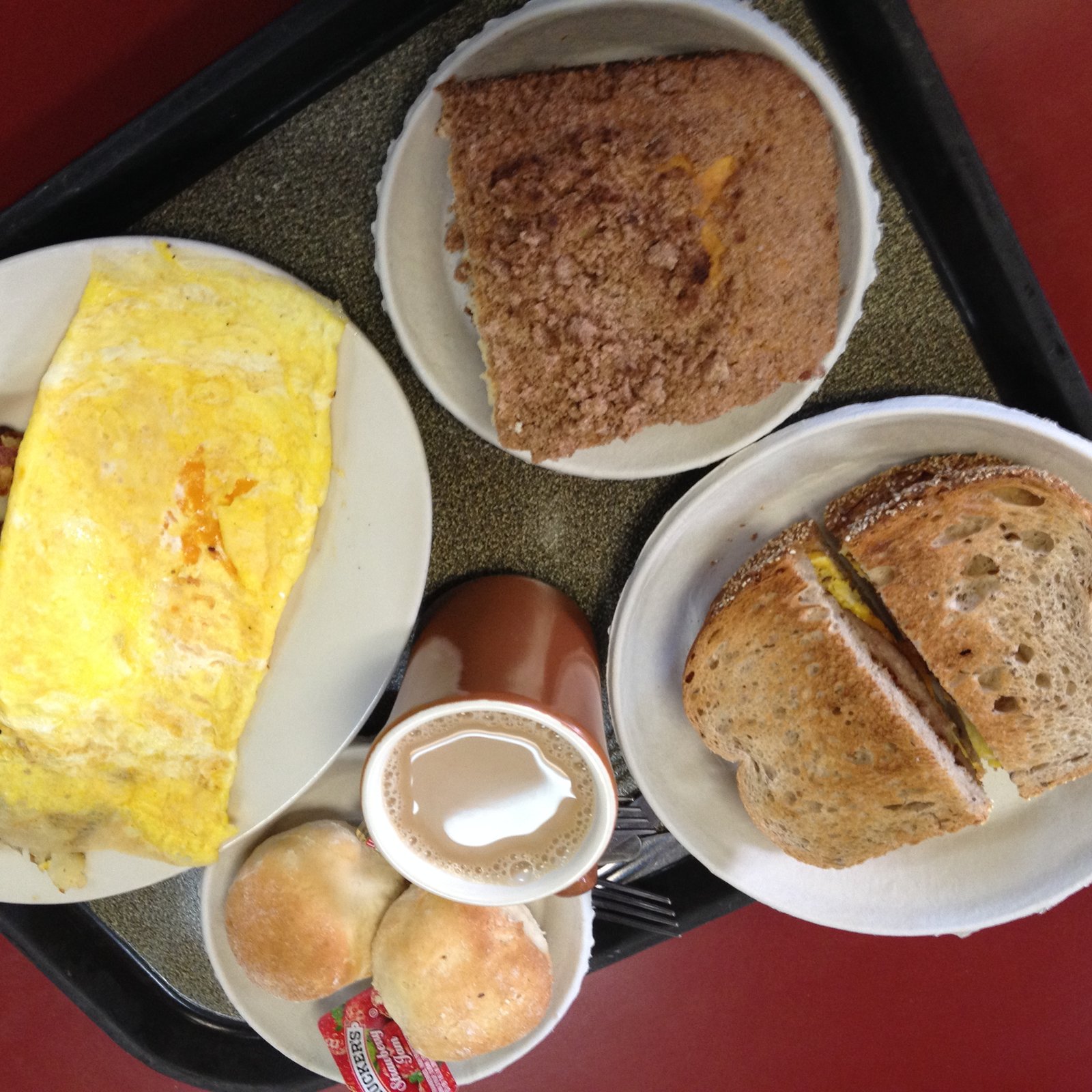 A slice of still warm fresh made coffee cake ($1.60) rounded out this meal.