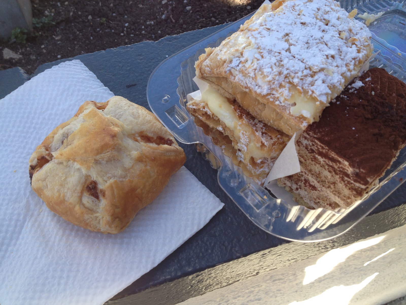 We bought the potato cheese filled puffy pastry and the Napoleon and the tiramisu all for less than $4.