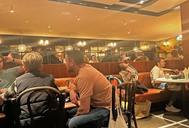 Arriving at Dishoom….well, the place was bustling, and would be even busier when we left as there was a small table available for us.