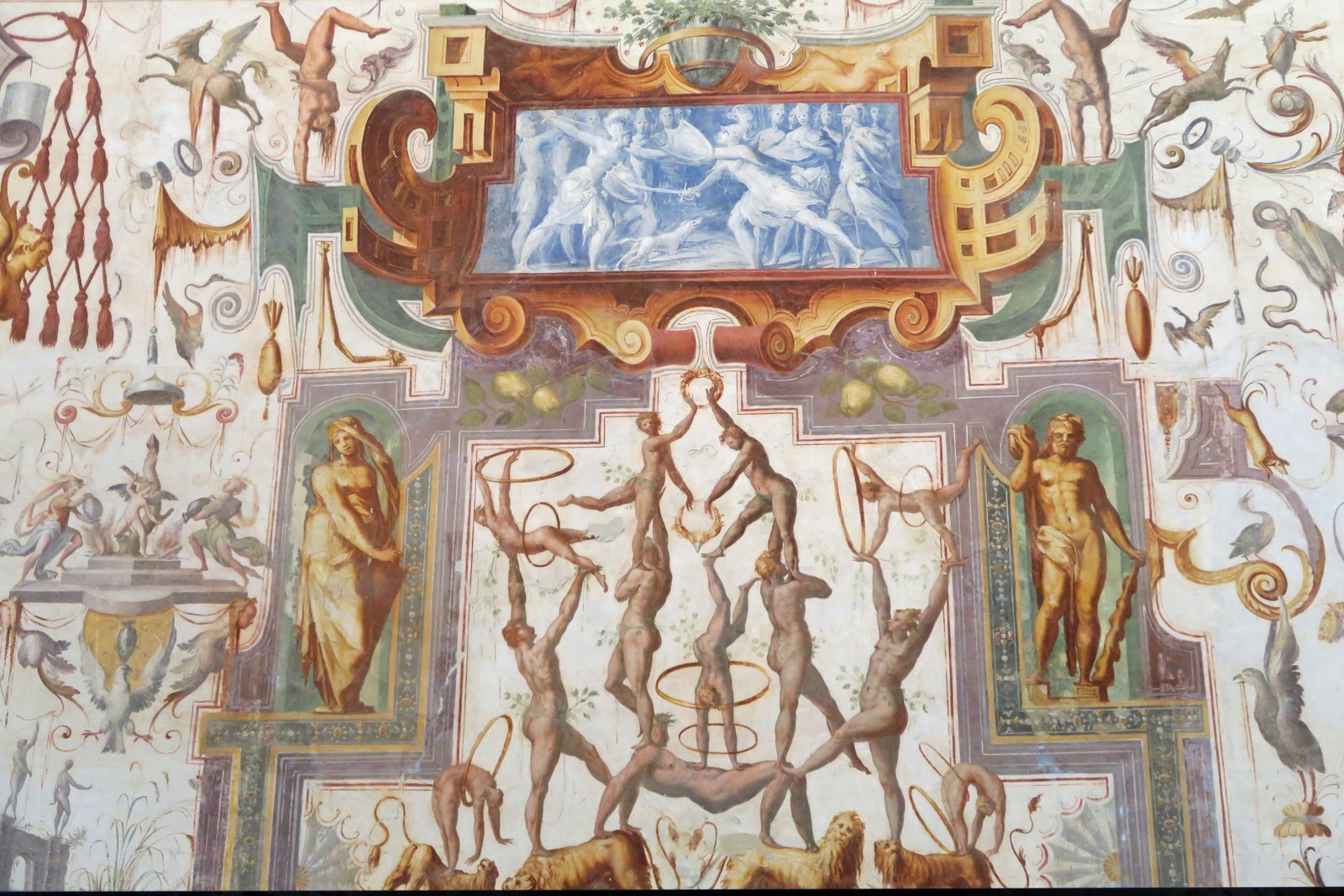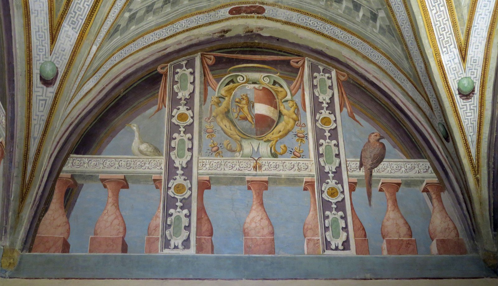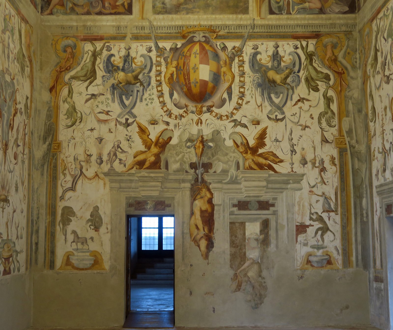 During the 16th century, under orders from Cosimo de' Medici, Vasari painted over the frescoes in the church while creating his own work.