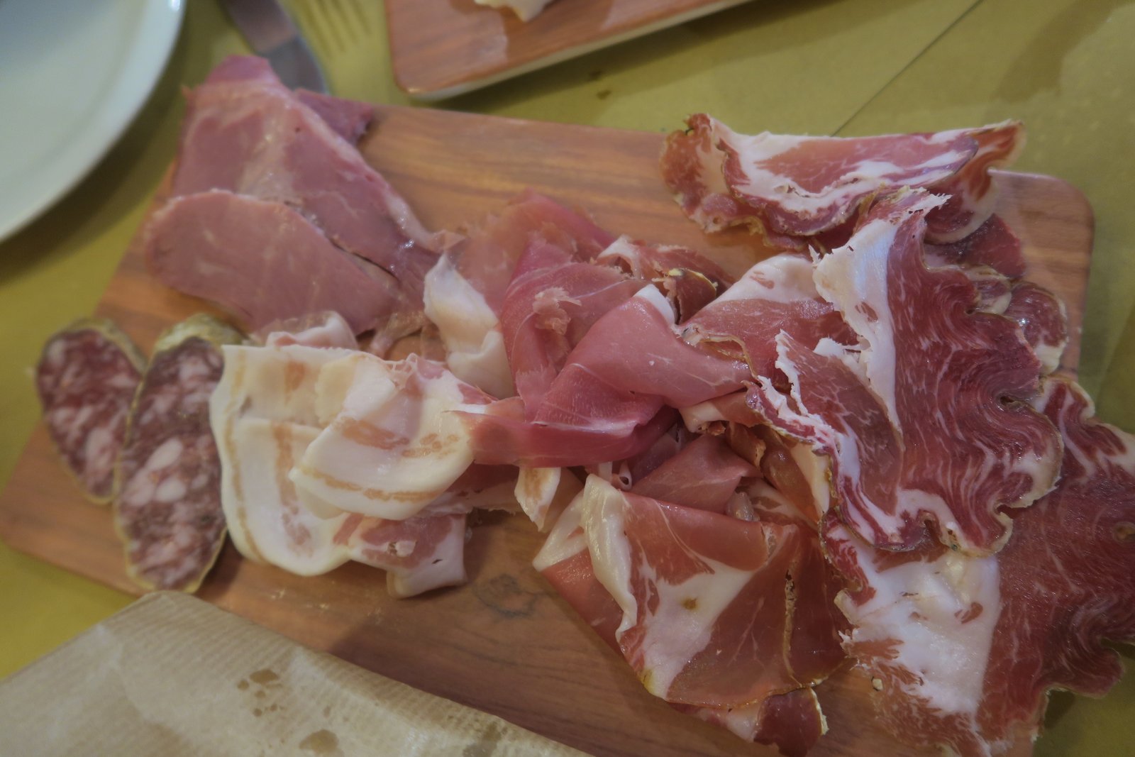 The fragrance of the truffle cut through some of the funky smell of the lampredotto, but didn't interfere with the gamy-offal flavor. I thought the bread was pretty good; light and yeasty. The guy also put some of the mildly spicy salsa verde on this was well. The texture was a bit tougher than versions I had in other dishes during our visit, but this wasn't bad.
