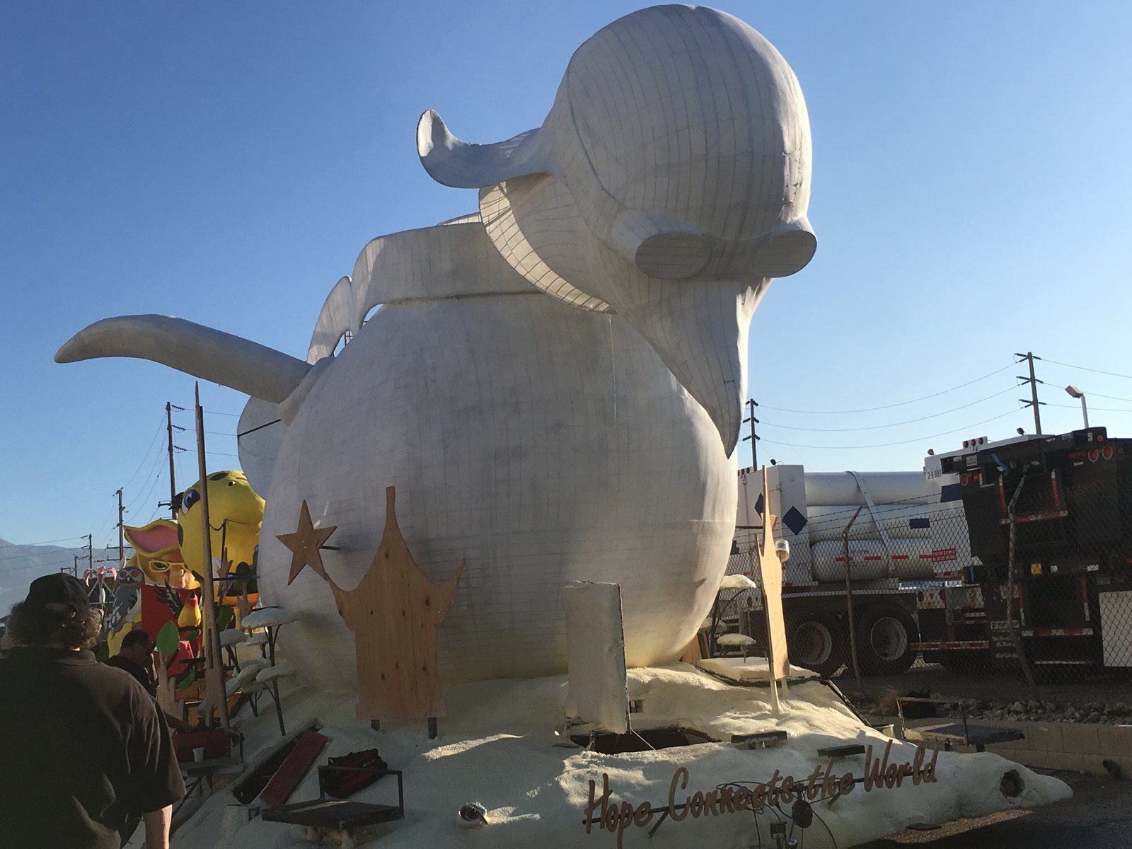 The Cowboy Channel has a float in the parade; it's under construction. Link to artist rendition of some of the 2020 Rose Parade floats