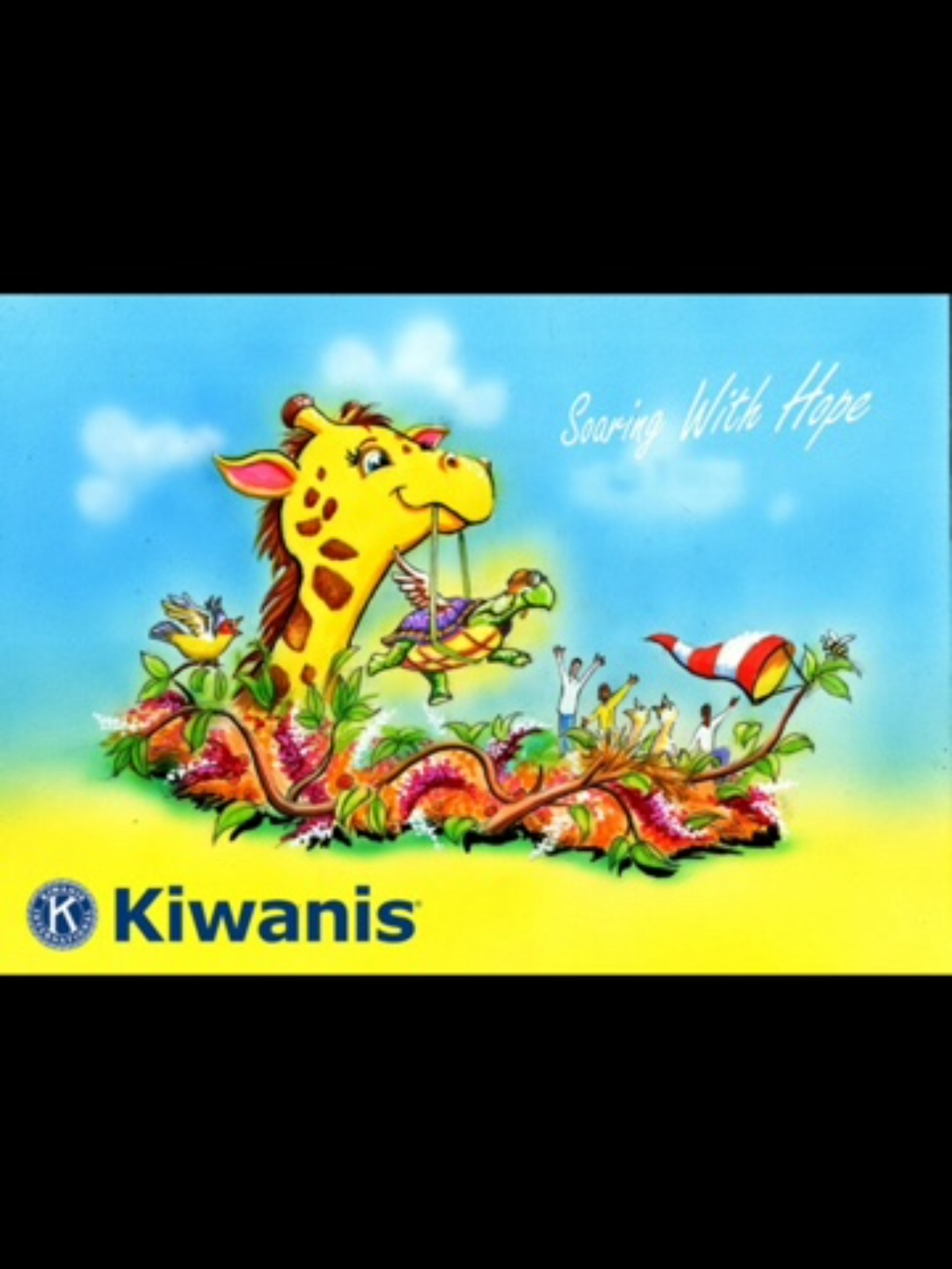 Shriners Hospitals for Children has the theme of "Hope Knows No Limits" and features Fezzy Bear pushing a young girl, with a below the knee prosthesis, on a swing.