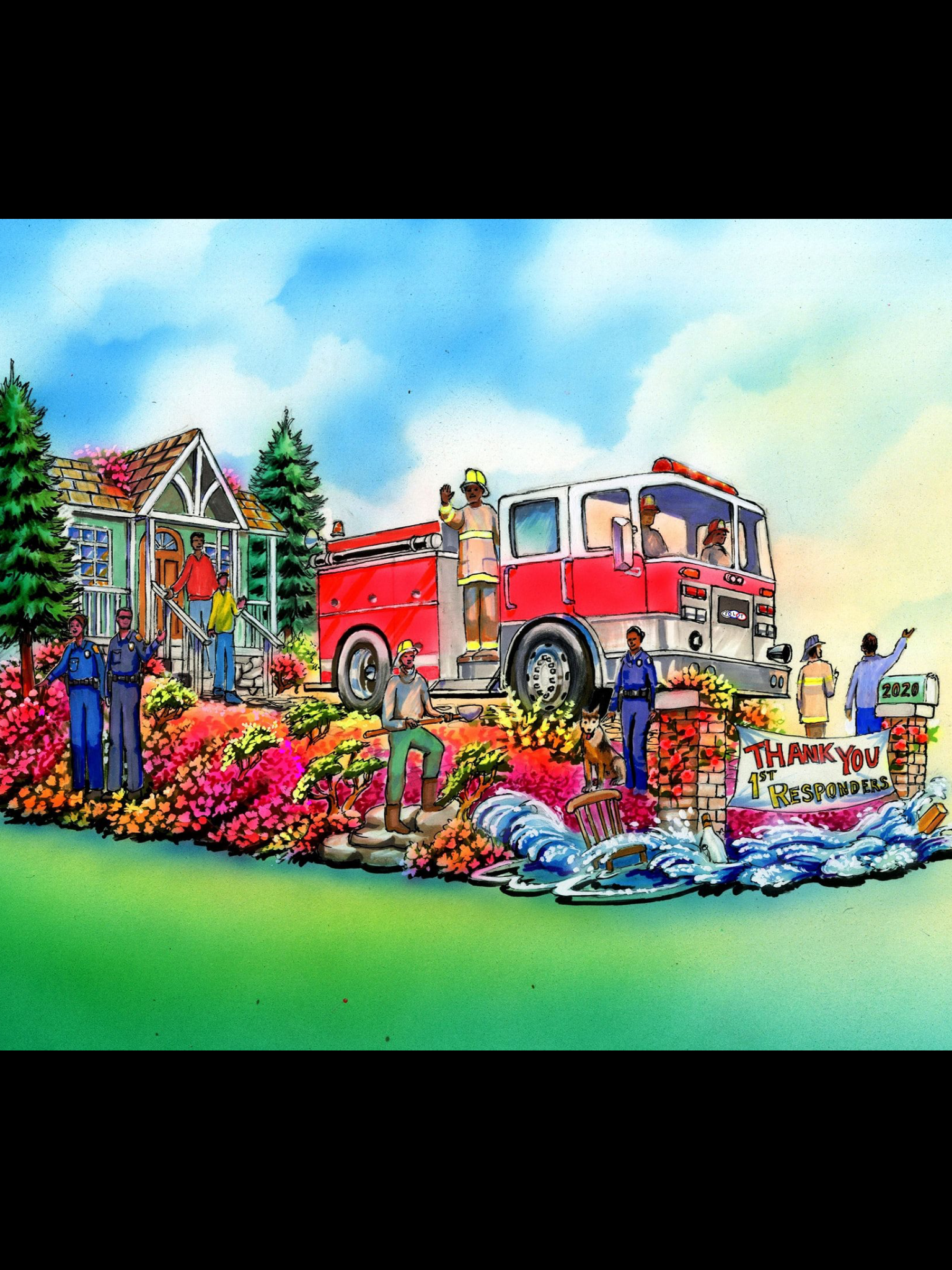"Planting Seeds of Hope", presented by the Sikh American Float Foundation, describes the 2020 float: "Bhai Ghaneya Singh, a devout Sikh, leads the float as he symbolically pours water from his sheepskin vessel. He is remembered for his selfless service to all humanity with love, respect, compassion and humility. The water flows onto large sculpted flowers each supporting children from diverse backgrounds. A fantasy garden provides the backdrop to a nurturing environment in which we celebrate our greatest hope for the future….our children." Each year, I learn something from the Sikh float.