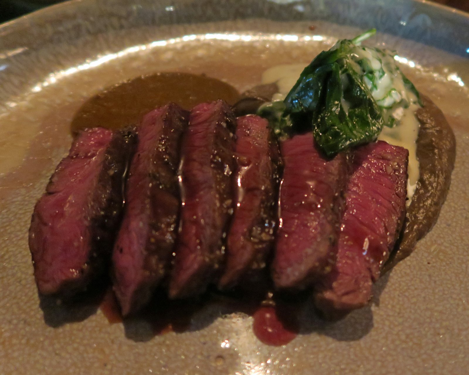 The beef was fork tender, cooked a perfectly medium rare, and had that wonderful, complex, mild gamey-pasture flavor to it. The "mole de olla" sauce had a pleasant, complex, mild sweetness to it. And the spinach and cheese sauce was so delicious as well.