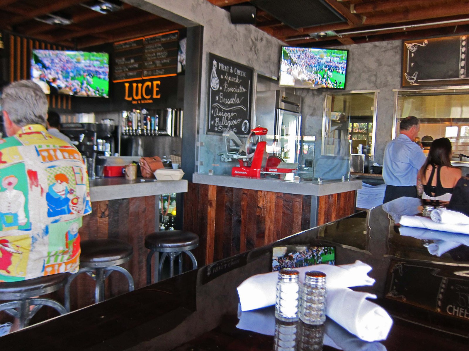 The large interior space is more modern in ambience and has a definite sports bar feel to it: