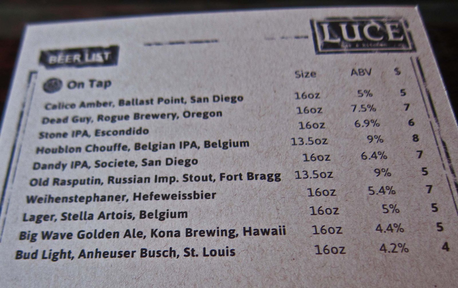Look at the top of the tap list, not the Bud and Millers listed toward the bottom. Here is a very different taplist for June 14:
