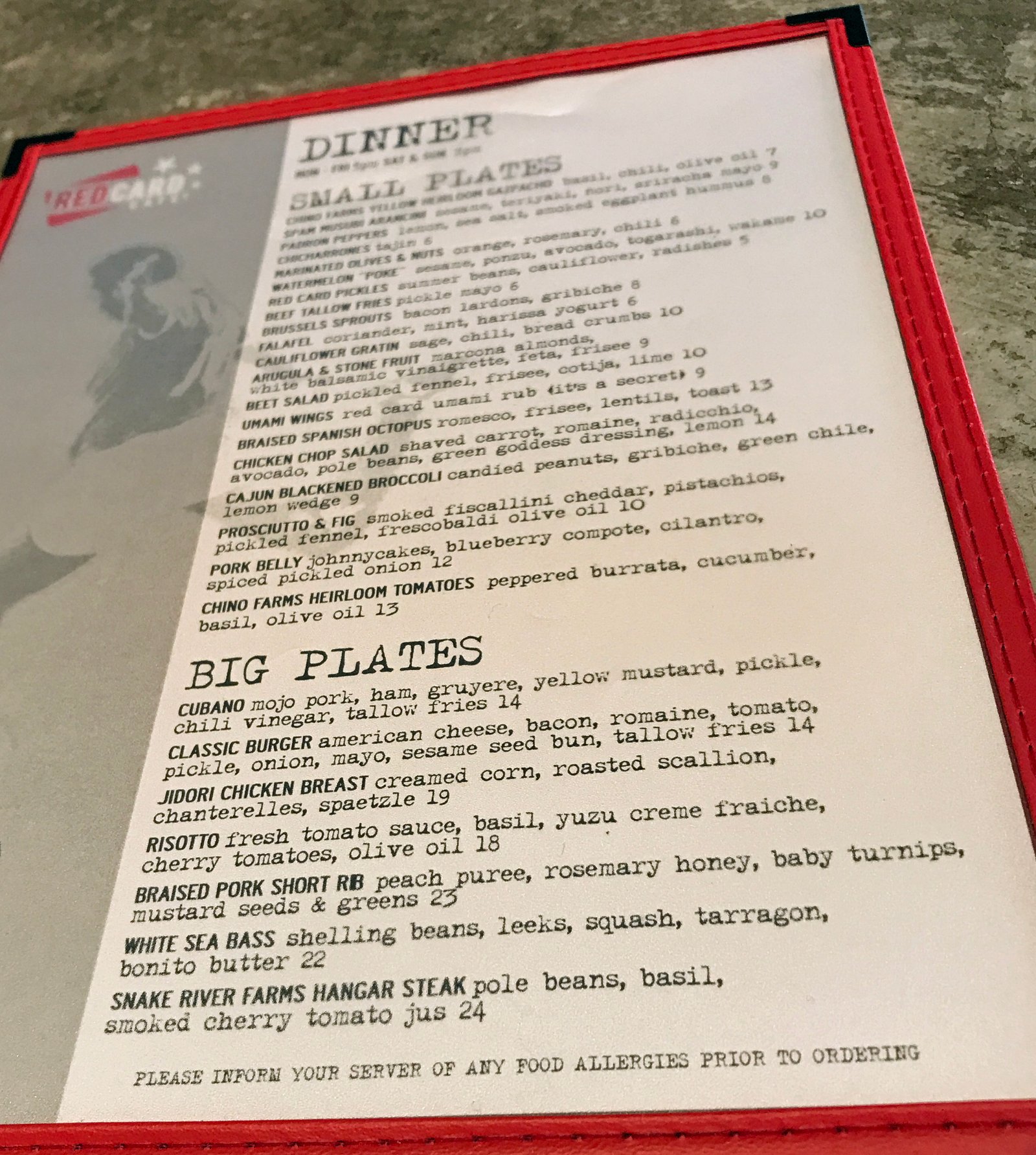 Over the last five or six years, we've often found that appetizers and small plates are the way to go for us. Kitchens will often take a bit more chances and stretch out a bit. Our strategy at Red Card was no different.