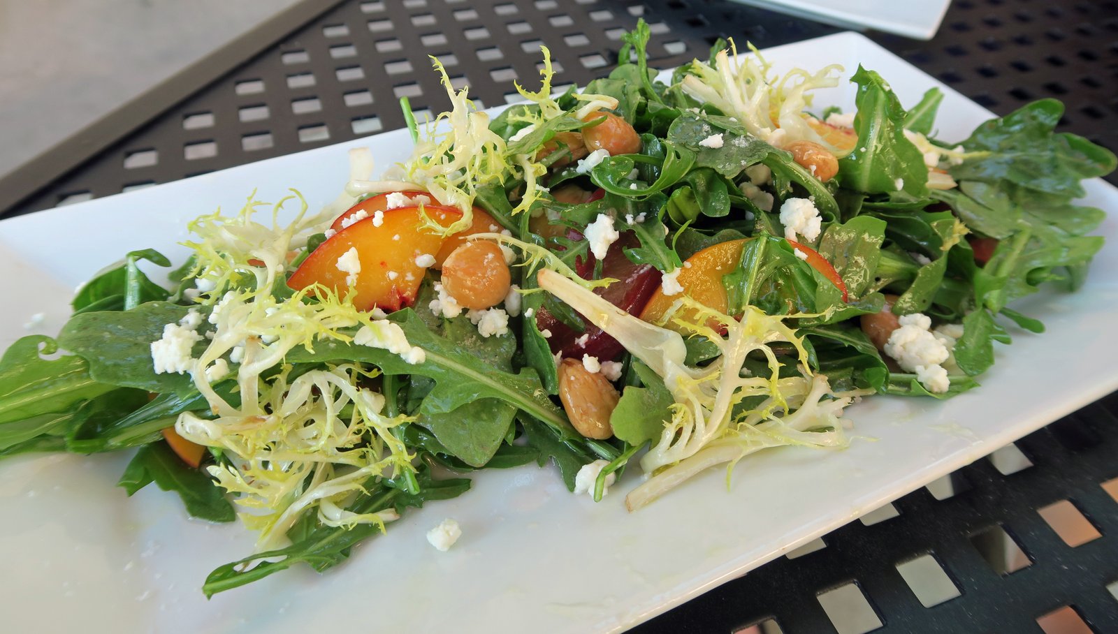 We enjoy the salads….pick one; we've enjoyed them all, though I think the Missus's favorite is the Arugula & Stone Fruit ($9).
