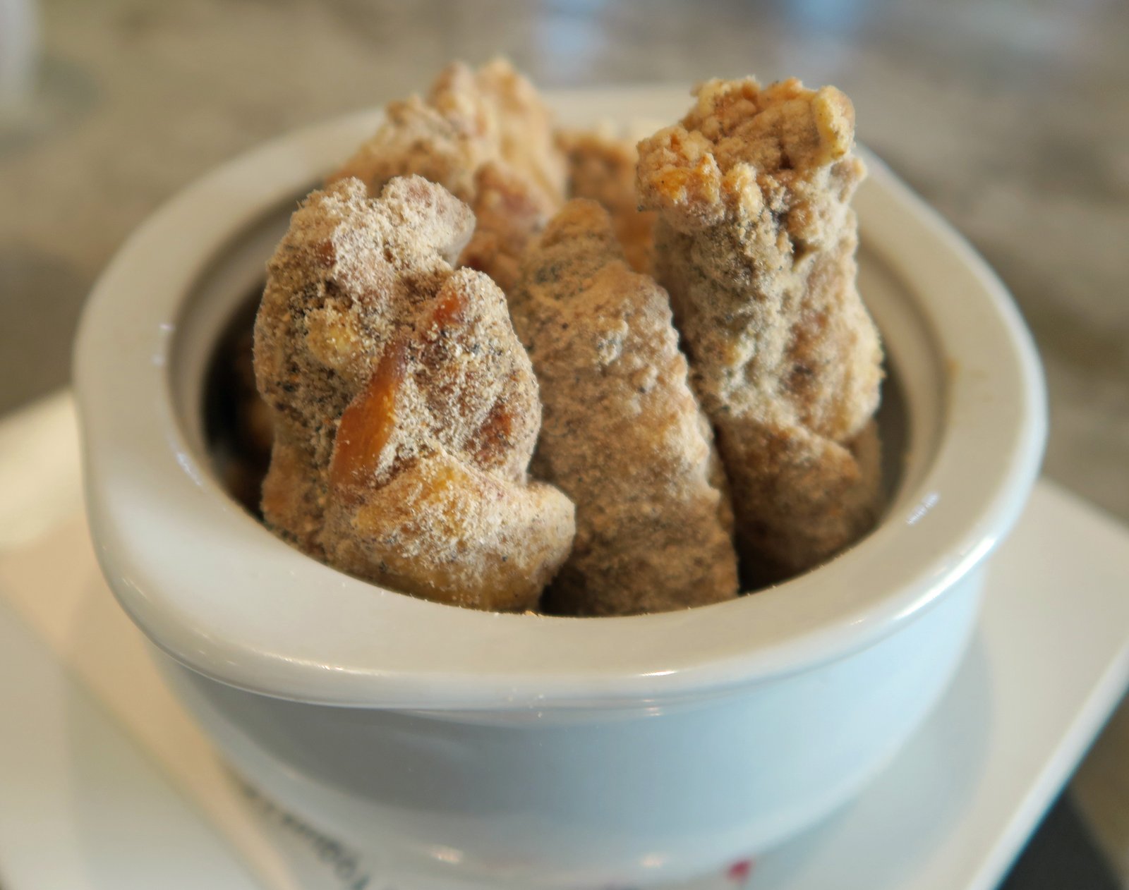 The powder seemed to detract from the crispness of the wings. These were also a bit too salty.