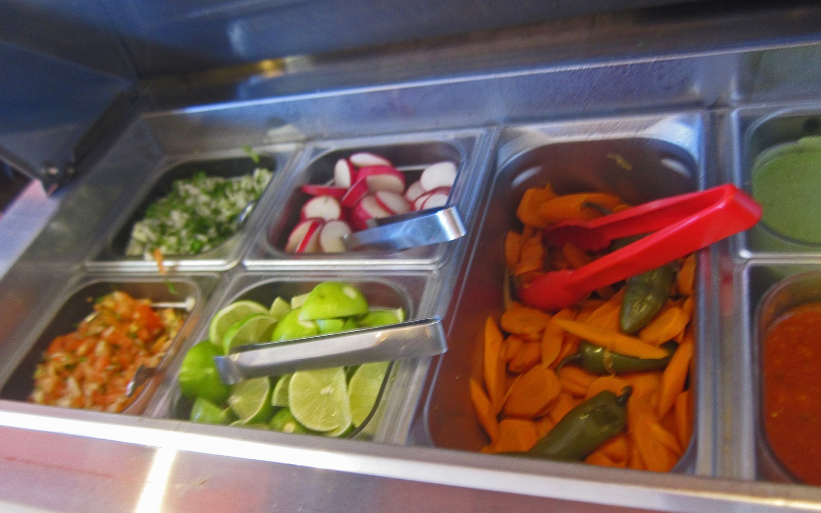 I did notice something curious about the salsa bar on this trip…notice the olives and sliced pepperoncini.