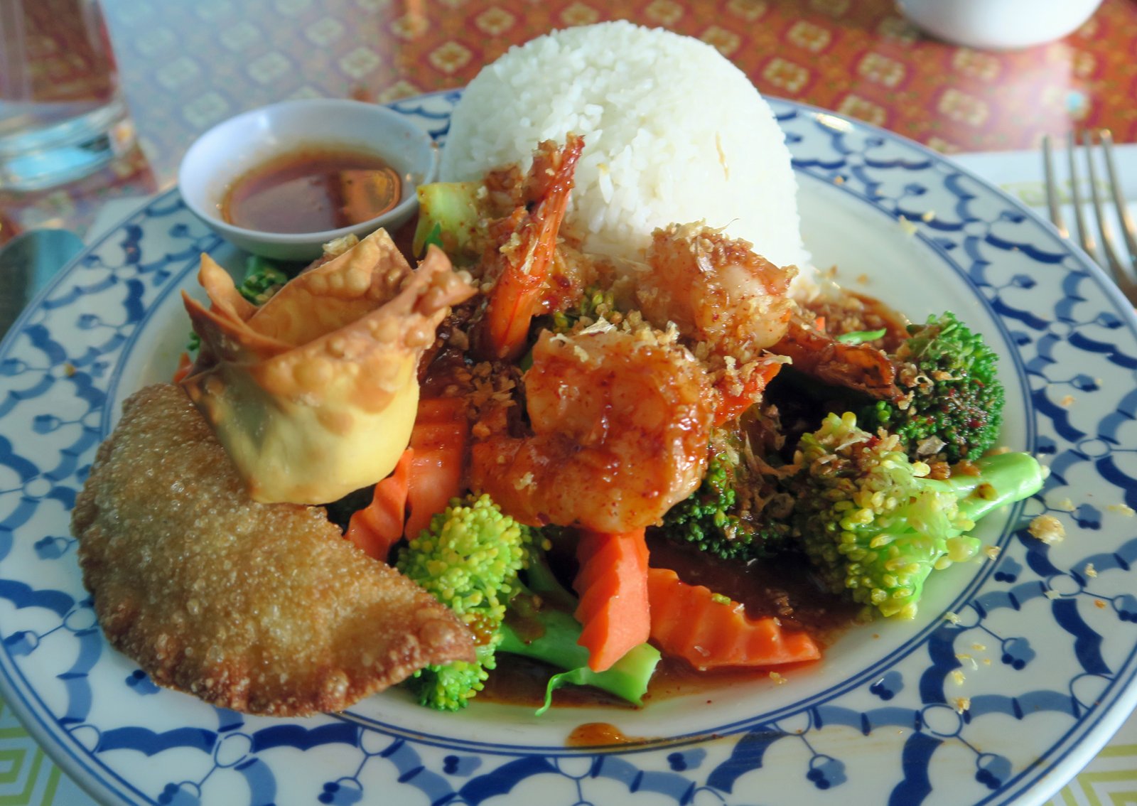 The eggs were pretty well done; nice and fluffy, savory, and while not quite as good as what I’d had here in the past; this was my favorite dish. This did better with Nam Pla Prik – the savory fish sauce with chilies than the Sriracha that was served with the dish. Still, I missed the version they used to make here.