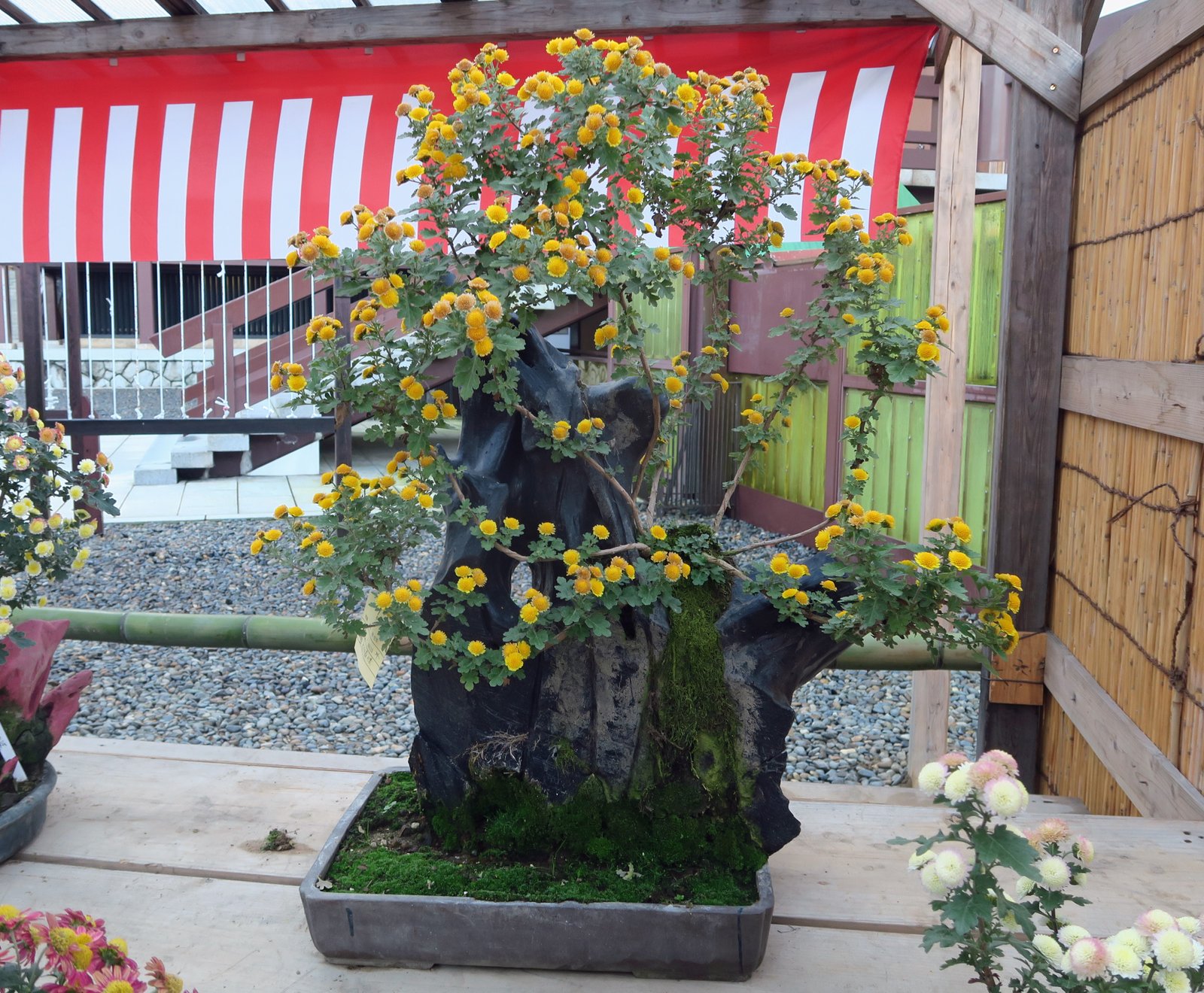 Workers were taking down plants and flowers from an autumn flower show which had concluded the previous day.