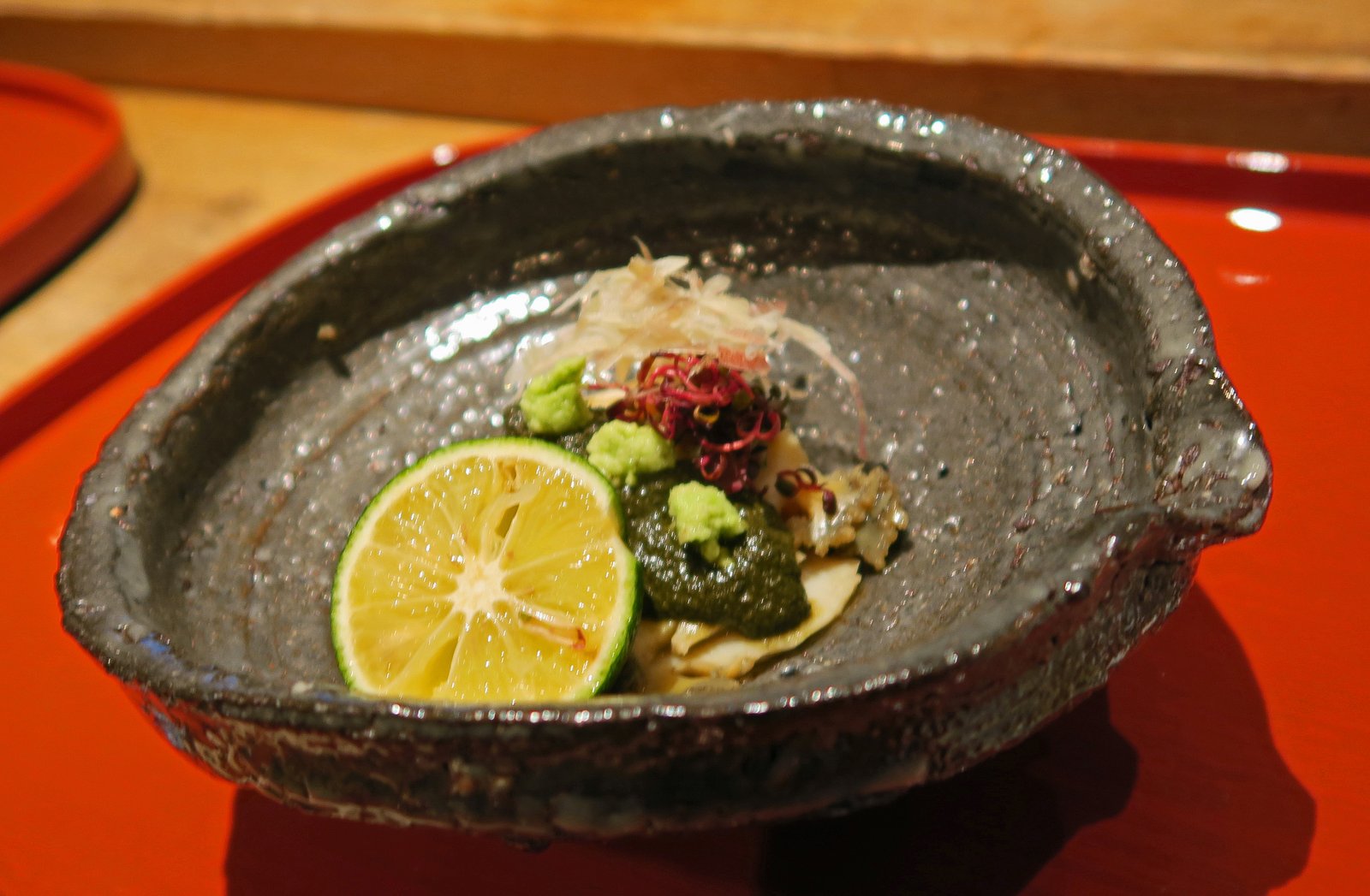 The meal itself was amazing…..Chef Murata would often stop everything he was doing to try and explain what he was serving, or his wife would try to find the English words for items……they seemed to be pleasantly surprised that I knew the Japanese or at least the English names of what was being served. Of course there were still many, many, gaps…items I've not had experience with, which made this meal even more pleasant.