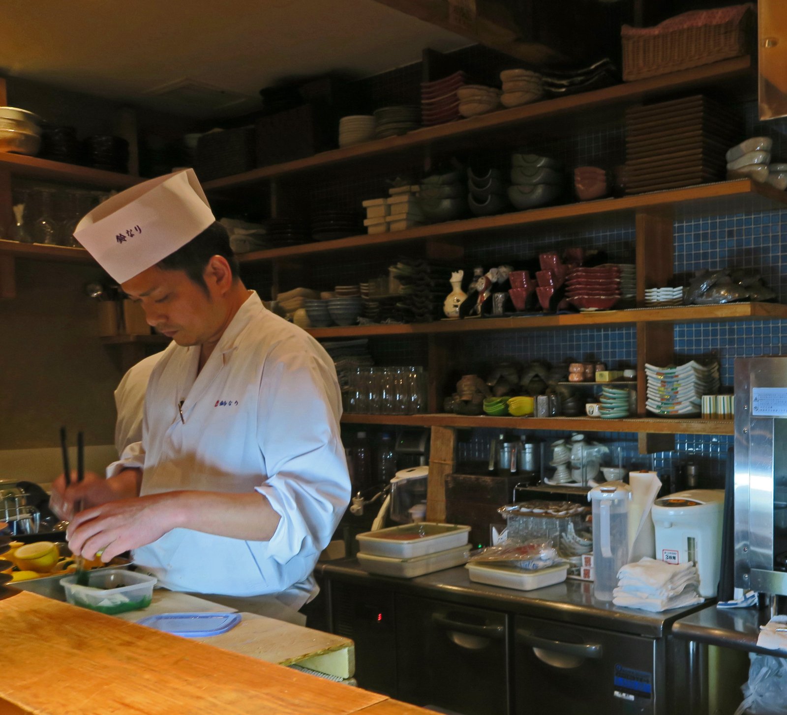 It was great watching Chef Murata and his assistant prep all the dishes. The entire staff was a total of four, the Chef, his second, his wife who worked the front of house, and an older woman, who seemed to be one of their mothers, who took care of the dishes and cleaning….it really seemed to be a family affair. And yes, this is Tokyo, most everything was done in almost a hushed silence. 10222014 131