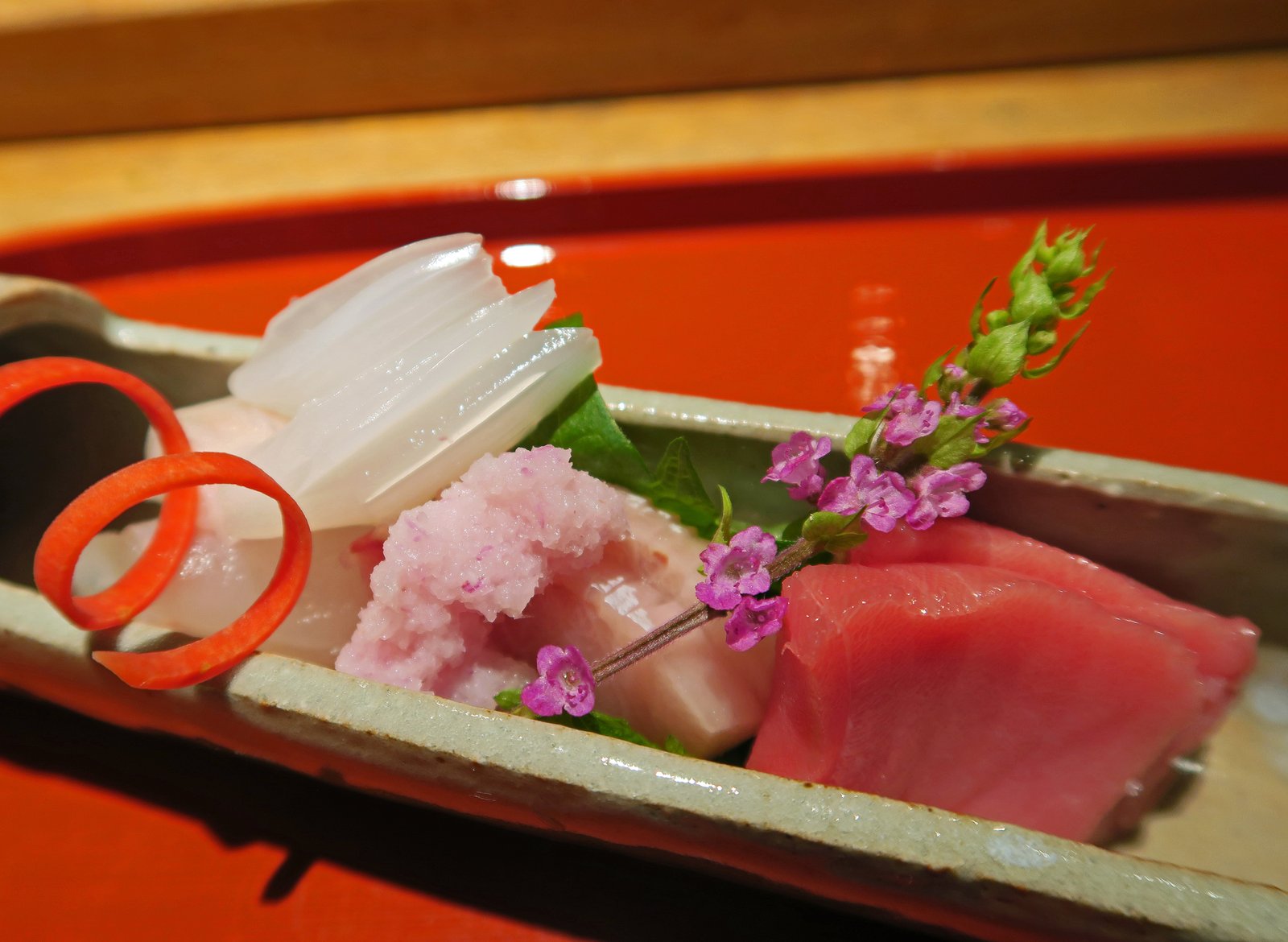 The Mukōzuke, the sashimi course, was fine…….