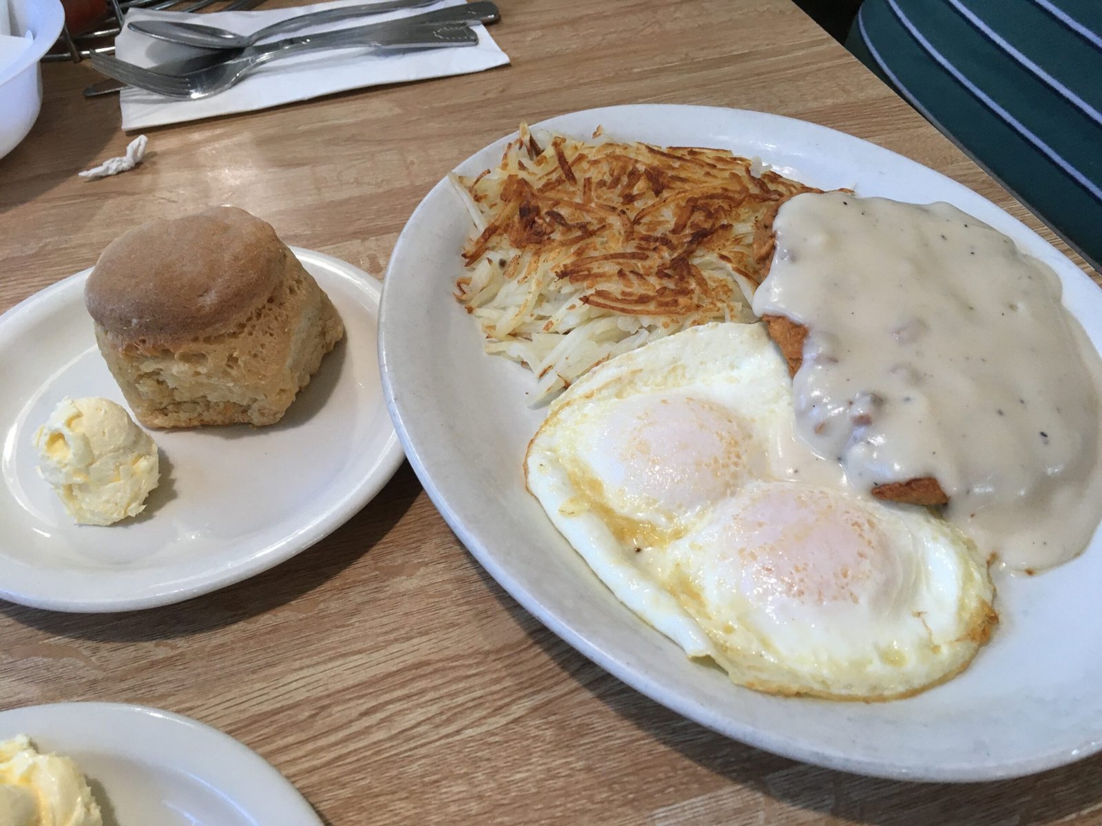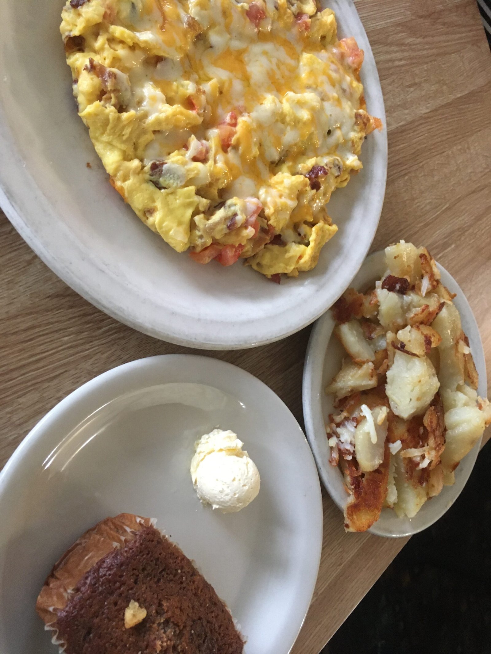 This came with a choice of toast, English muffin, biscuit or pancakes, and pancakes were what was craved. The cakes were quite thick/large and had a nicely crisp crust.