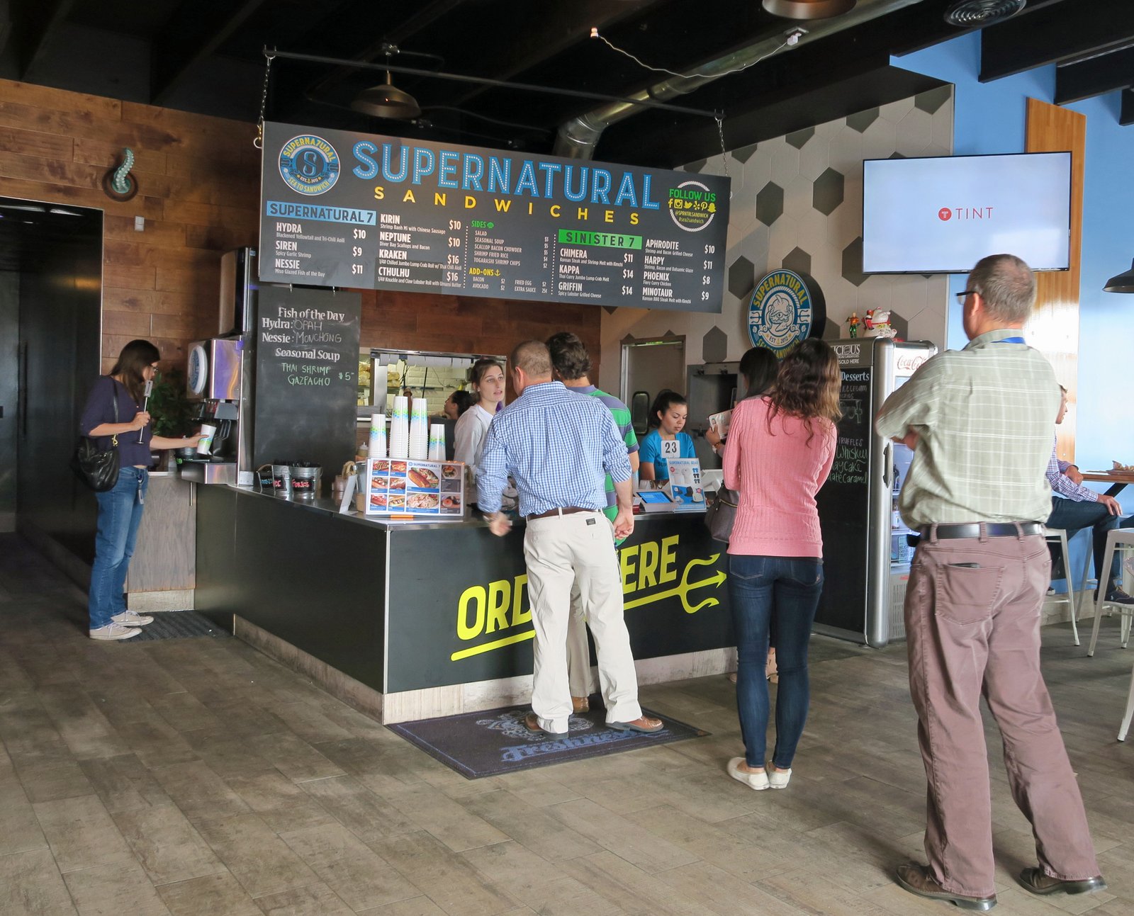I wasn't quite sure what was going on. Then I realized, it was "all hands on deck" as they were prepping box lunches….like stacks of food, which the tall guy carried out making several trips back and forth then left to deliver them somewhere. It took them a while to see that I was standing there.
