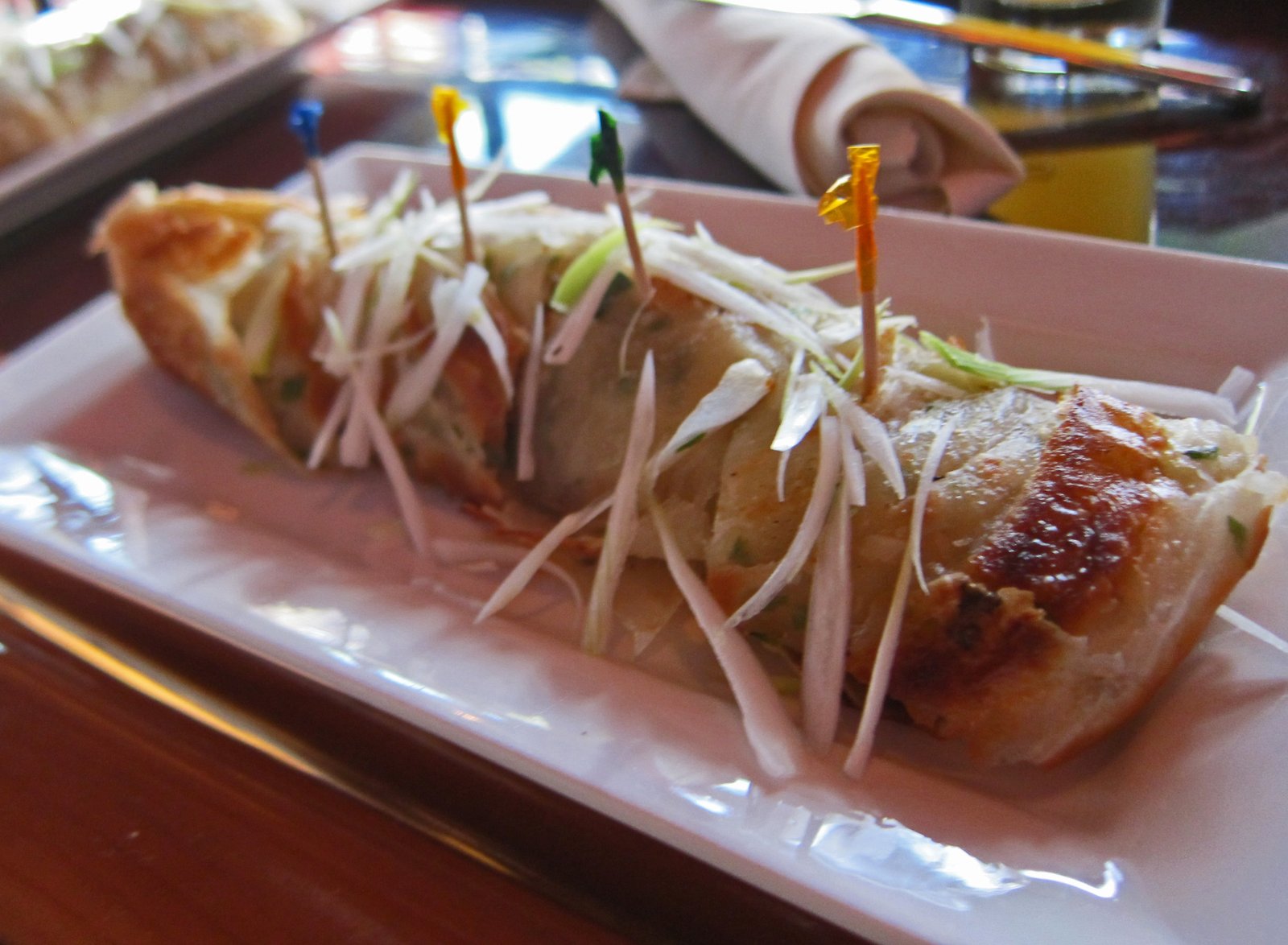 Our first meal began with some slices of an artisan French baguette with a nice crunchy crust, accompanied by green curry hummus. Never had green curry hummus before, but the flavors melded nicely with the bread. A great start to a meal: